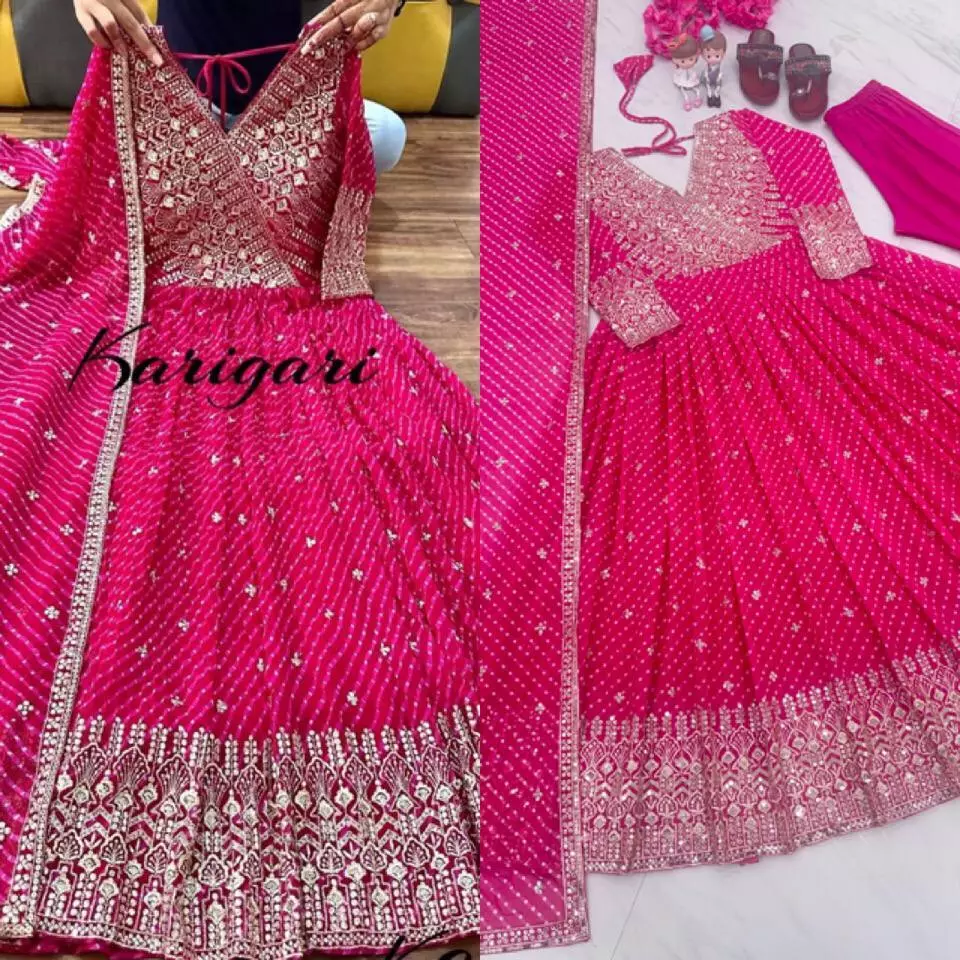 Indian Designer Anarkali Kurta With Pant Dupatta Set Wedding Special Kurta Kurti